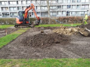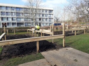 • Genetablering af x-antal nyttehaver mellem eksisterende blokke. I april 2024 blev atten haver genetableret og taget i brug mellem blokkene på Jettesvej.